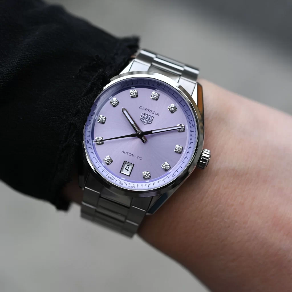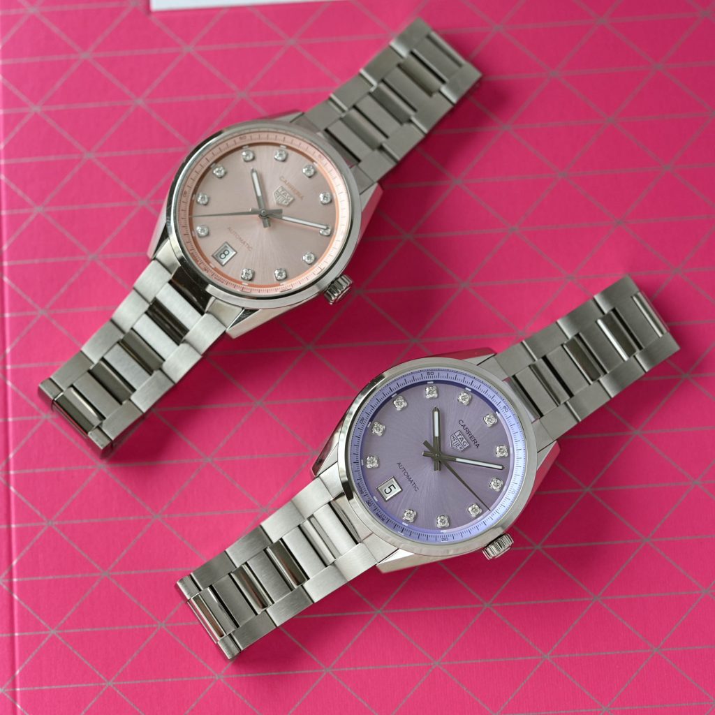 At the LVMH Watch Week 2025, TAG Heuer introduced a refreshing twist to its iconic Carrera Date collection with the launch of two stunning pastel-colored models. While the brand is often associated with bold, motorsports-inspired designs, these new releases offer a softer, more refined aesthetic, perfect for the upcoming spring season. The 36mm timepieces feature delicate powdery pink and lilac dials, adding a touch of elegance to the already diverse Carrera Date lineup.